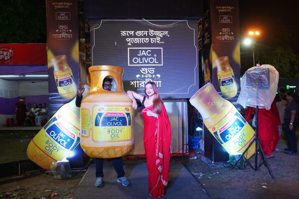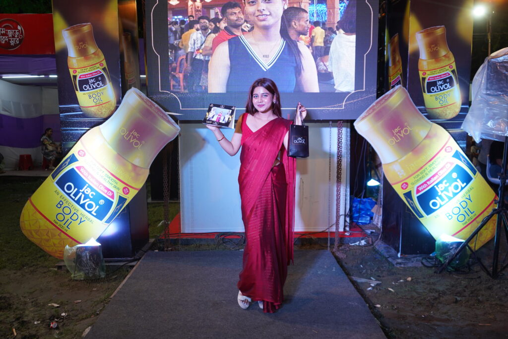 - Jac Olivol – Great skin is in all through the year but when Durga Puja comes around, surely it is the special time to show it off to the world? Jac Olivol, Eastern India’s #1 Ayurvedic herbal body oil infused with olive oil, went the extra mile at the bustling Maddox Square’s Durga Puja with promo in which the mascot dressed as a cute Jac Olivol bottle turned into a “Glow Collector” moving about and selecting pretty ladies with glowing skin who came to visit the puja pandal. Their spot photos were flashed on the screen and they received instant gift hampers for their Puja glow. So much more to rejoice over, right? Our charming influencers were at Maddox Square looking ethereal in their festive wear and soaking in Durga Puja vibes to the fullest. Both gave a big thumbs up to Jac Olivol for enabling their skin to look its radiant and youthful best despite hectic schedules.